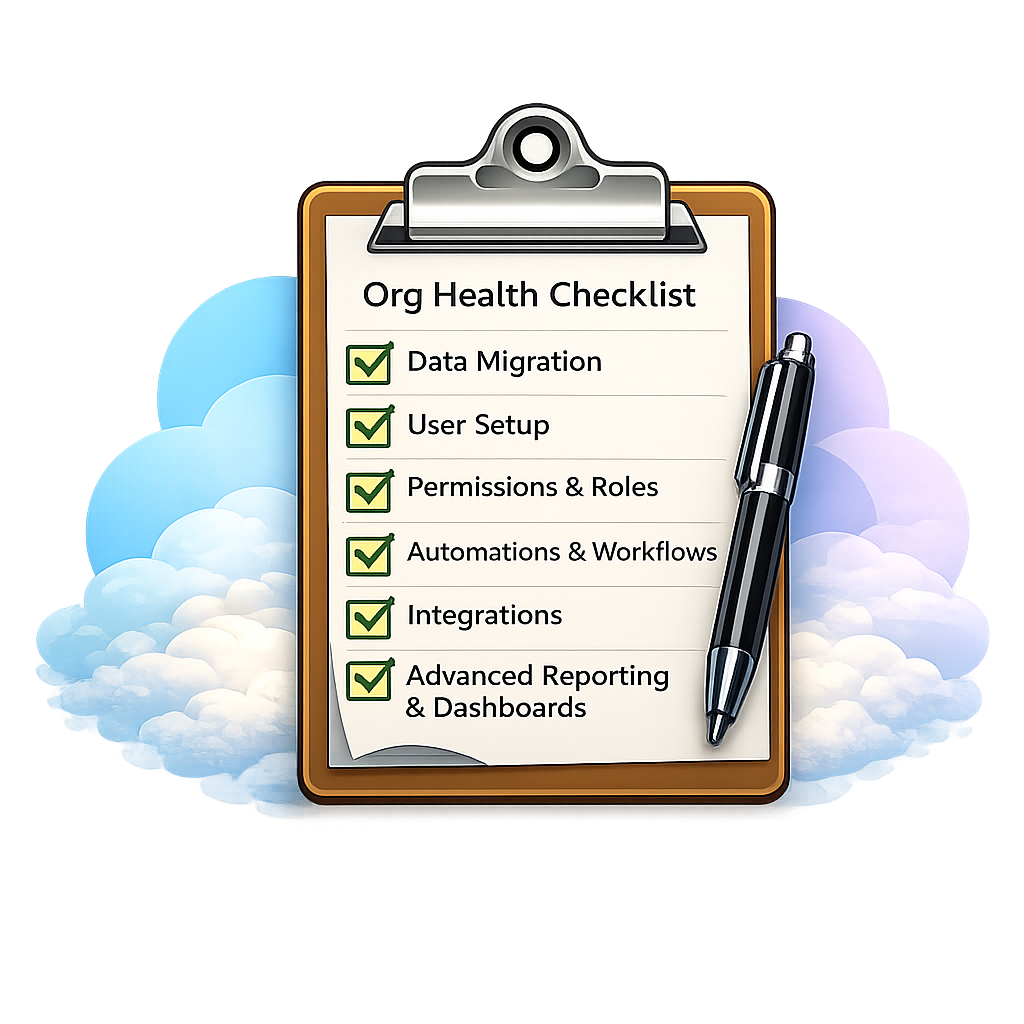 A practical checklist for identifying structural issues, technical debt, reporting limitations, and missed opportunities in your Salesforce environment.